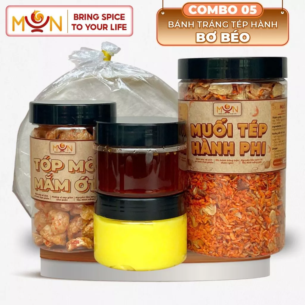 🔥 COMBO 05 | Bánh Tráng Cuộn Bơ MẶN: Bánh Phơi Sương + Bơ Béo + Muối Tép Hành Phi + Tóp Mỡ + Sốt Tắc đang giảm giá!