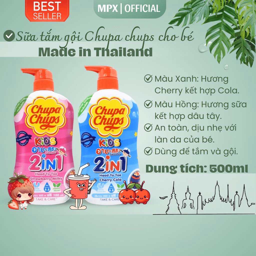 Sữa tắm gội toàn thân hương sữa dâu cho bé trên 3 tuổi Chupa Chups 2 in 1 600ml Thái Lan – MPX