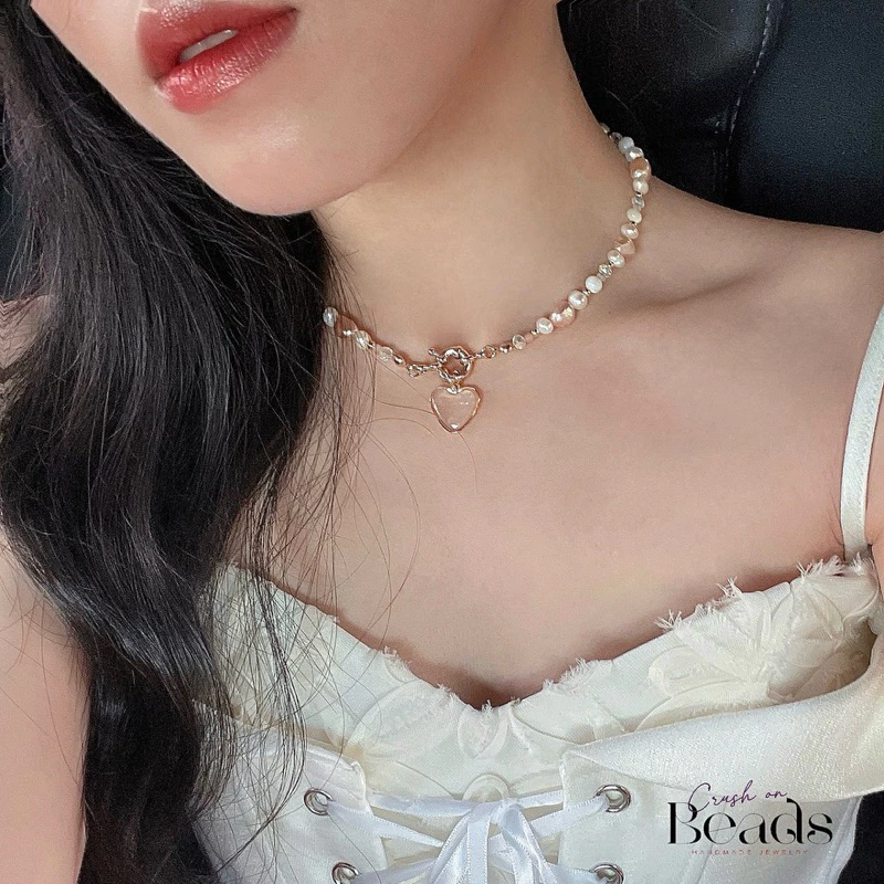 🔥 Vòng Cổ Handmade CrushonBeads Phối Hạt Cườm Mặt Trái Tim Vỏ Xà Cừ Hồng Sweet Heart Necklace đang giảm giá!