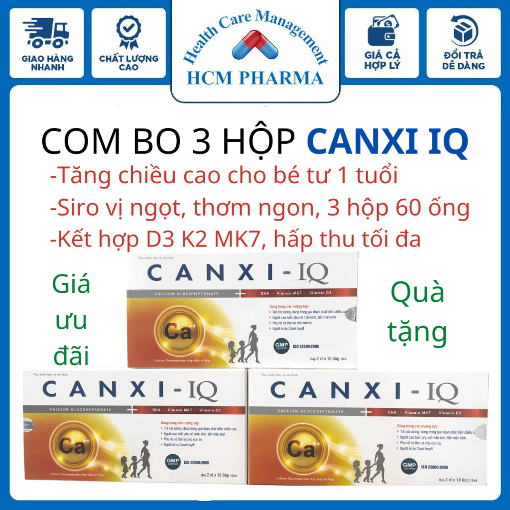Sản phẩm CANXI-IQ HCM PHARMACY BPC32 được thiết kế đặc biệt với công thức canxi dễ hấp thu, cung cấp nguồn canxi dồi dào cho sự phát triển xương của trẻ. Với giá 150.000 VND cho một combo 3 hộp, đây là một lựa chọn tiết kiệm và hiệu quả cho các bậc phụ huynh muốn đầu tư vào chiều cao của con mình.